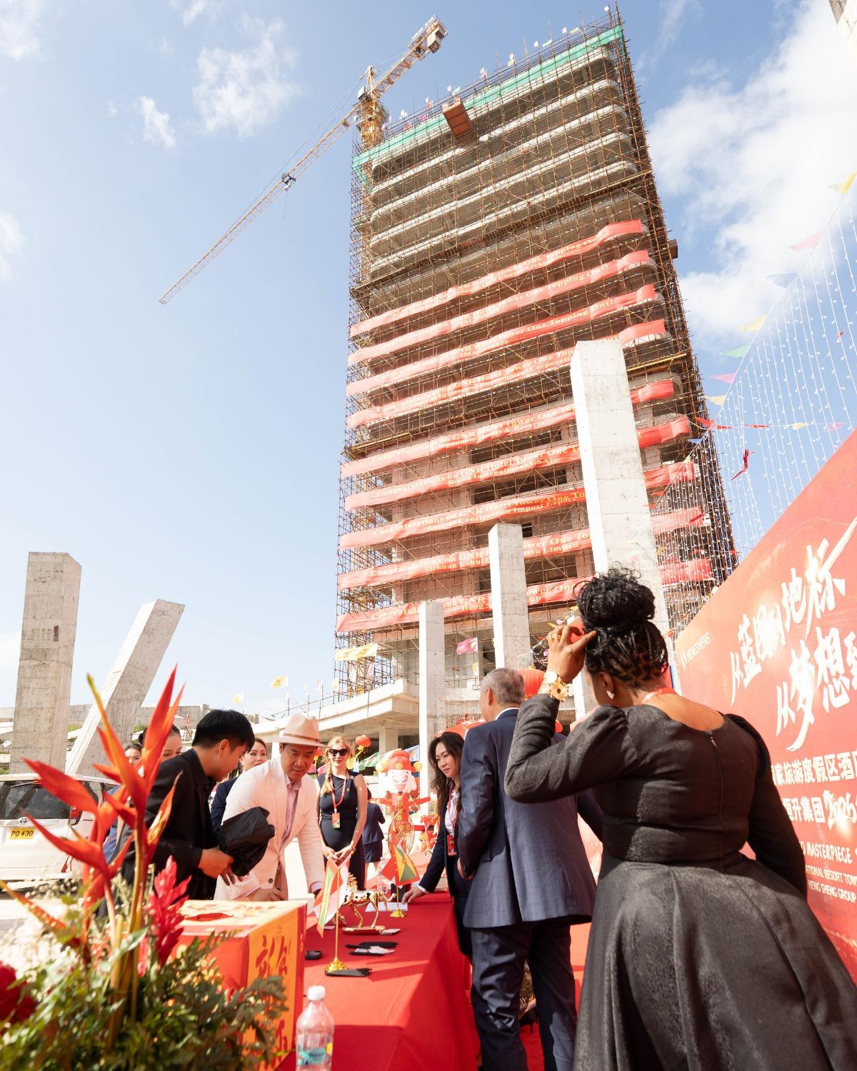 Rising impressively above the festivities was the silhouette of the tower, which has officially topped out at 17 floors to become the tallest building in Grenada—a proud visual reminder of the momentum at the resort.